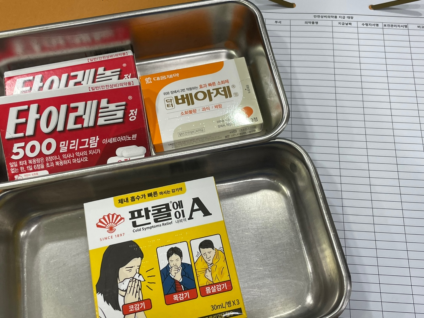 지급대장을 만든 후 작성해서 안전상비의약품을 지급하고 있습니다.